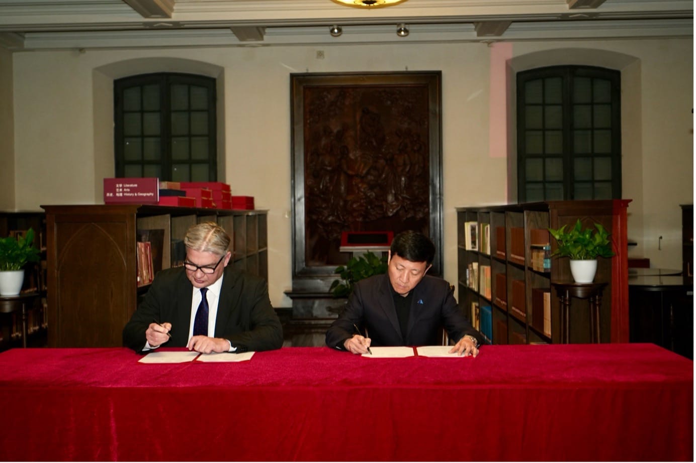 上海图书馆(上海科学技术情报研究所、上海市古籍保护中心)馆长陈超与俄罗斯科学院中国与现代亚洲研究所学术带头人卢金·亚历山大(Lukin Alexander)在上海图书馆徐家汇藏书楼正式签订合作协议。